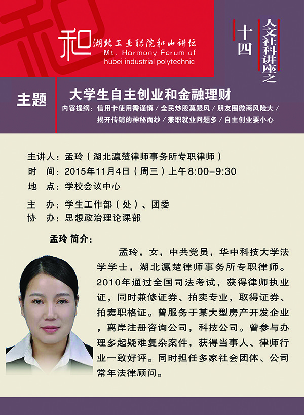 和山讲坛第十四期公告