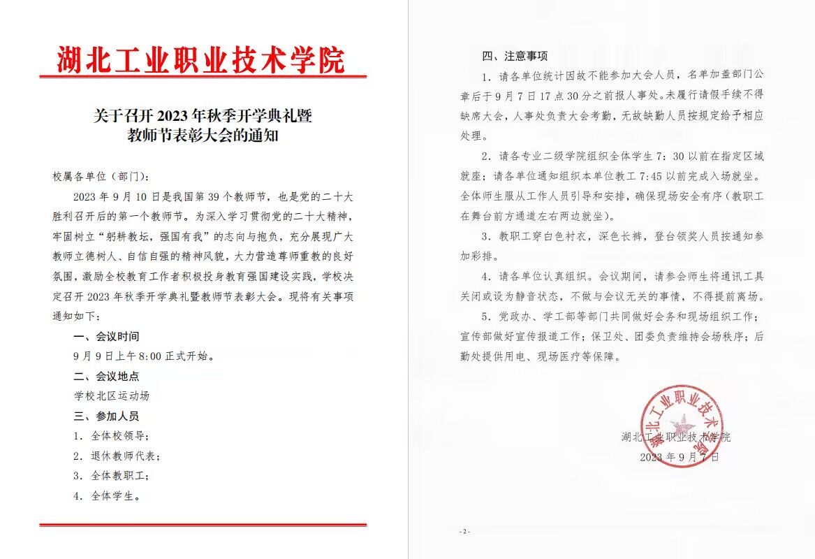 关于召开2023年秋季开学典礼暨教师节表彰大会的通知